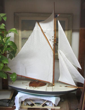 Yole à clins (acajou/noyer) au 1/10° environ (95cm) |